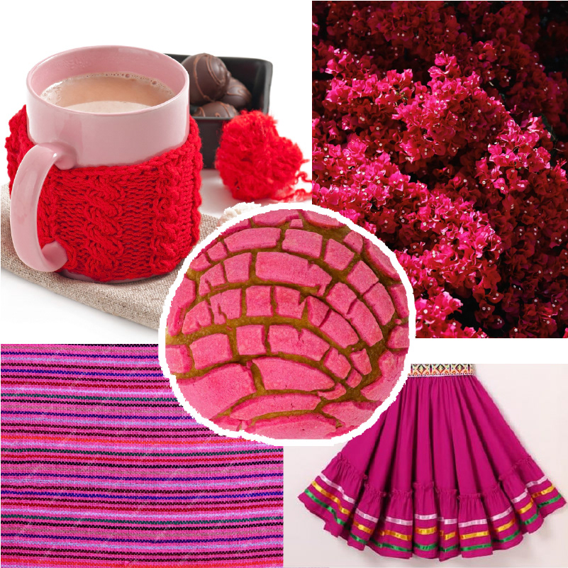 The brand is inspired by the traditional "rosa Mejicano" or Mexican pink present in several cultural elements of Mexican culture, and primarily referring to the flower of bougainvillea very popular in the region. I got inspiration from textiles flow to choose the font for the logo and the texture of the pan dulce to create textures.